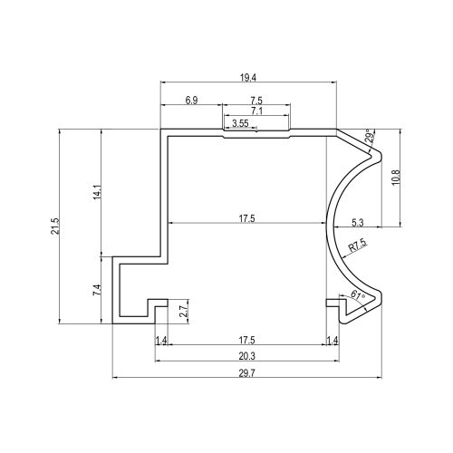 Domov / ... / OKOVJE IN PRITRDILNI MATERIAL / POHIŠTVENO OKOVJE / SISTEMI ZA POHIŠTVENA DRSNA VRATA / ALU ROČAJ ZA DRSNA VRATA RU 18 2,7m ALU ROČAJ ZA DRSNA VRATA RU 18 2,7m Aluminijast ročaj za drsna vrata RU 18, dolžina: 2,7 m, za iveral debeline 18 mm.